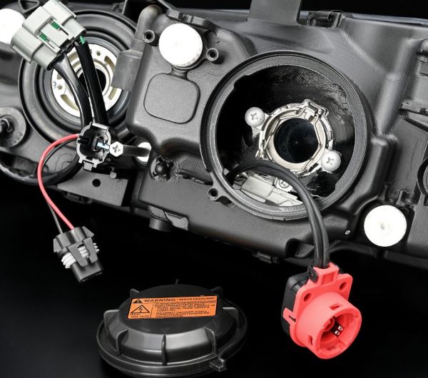 ハイグレードポリカを使用したレンズ、インナーカバー、リフレクターハウジングで構成された、ヘッドライトユニットです。ロービームにはHID(D2R)バルブ、ハイビームにはハロゲンHB3バルブをどちらも純正ライト同様のバルブを流用使用出来ます。光軸調整機能あり(オートレベライザー機能はありません)。バルブ・ソケット・バーナー・バラスト等は付属しません。<車検対応>